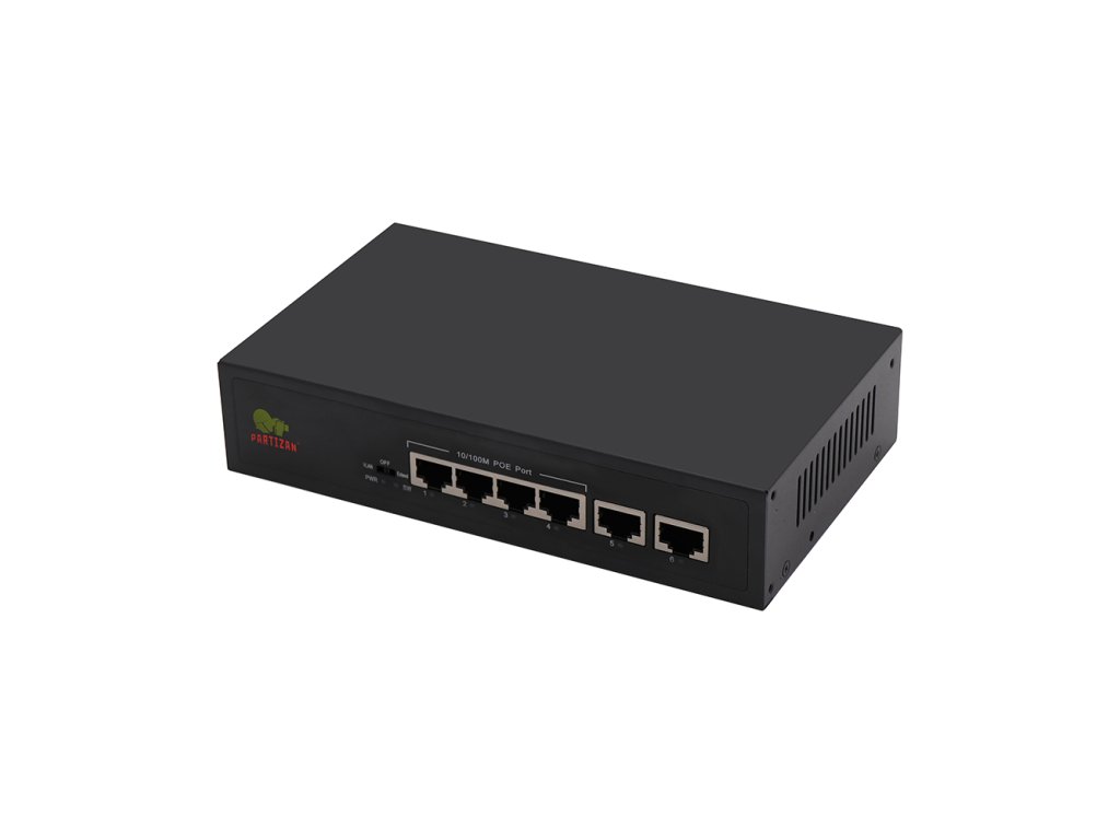 — 4 PoE 2 Uplink 10/100M porty switch