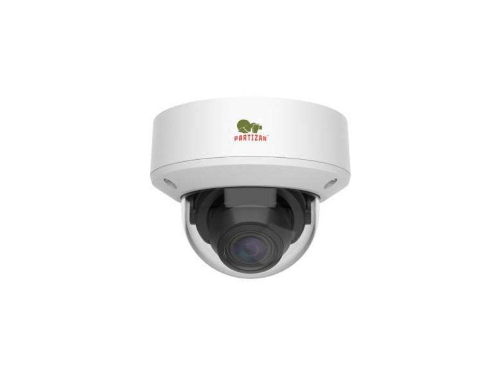 The robust metal housing with IP66 and IK10 protection ratings ensures reliable operation in harsh environments. The camera supports PoE power supply, remote access via Partizan mobile application, and integration via ONVIF protocol.
