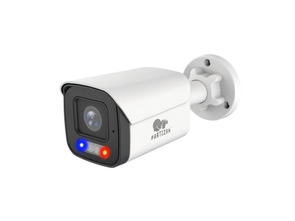 — 5Mp resolution — High sensitivity — Built-in alarm red & blue flashing lights — Smart functions support: Human detection — Smart functions when using together with Cloud-series NVR: Human detection, Human Perimeter Intrusion Detection, Human Line Crossing Detection, Vehicle Detection — IR White LED Smart Detection, 24/7 Full Colour — Support mobile monitoring: iOS & Android — Ability to work with the unique complete solution PARTIZAN CLOUD STORAGE — Remote access to the device with Partizan MAC — IP67 rating — ONVIF 2.4 protocol support — 3 years warranty